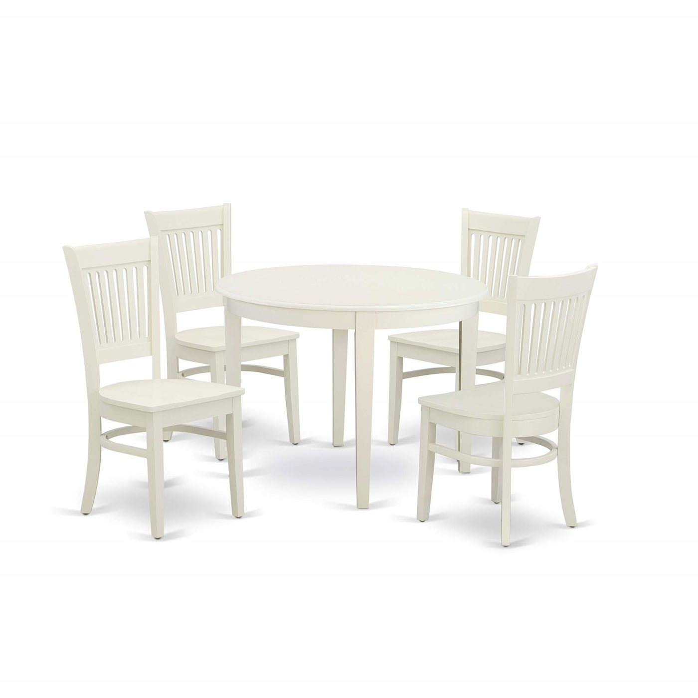 Ergode Bova5-Lwh-W, 5-Piece Dining Room Set, Wooden Table & 4 Chairs, Linen White Finish, Easy Assembly, High-Quality Rubber Wood, 42X42 Inch