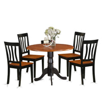 Ergode Dlan5-Bch-W, 5-Piece Dinette Table Set, Round Tabletop With Dropleaf, 4 Chairs, Asian Wood, Black & Cherry Finish