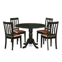 Ergode Dlan5-Blk-Lc, 5-Piece Dining Room Set, Round Table With Dropleaf, 4 Faux Leather Chairs, 42X42 Inch, Black