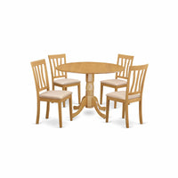 Ergode Dlan5-Oak-C, 5-Piece Dining Set, Mid-Century Modern, Linen Fabric Chairs, Oak Finish, Rubber Wood Construction, Sleek Design, Easy Maintenance, Perfect For Families