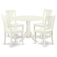 Ergode Dlav5-Lwh-W, 5 Piece Dining Set, Round Table With Dropleaf, 4 Wood Seat Chairs, 42X42 Inch, Linen White