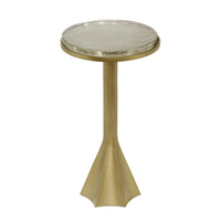 Elevate Your Living Space With The Gabrielle Round Side Table, Where Elegance Meets Artistry! The Brass-Colored Aluminum Base Adds A Touch Of Timeless Sophistication And The Swelled Base Adds A Touch Of Whimsey And Visual Interest. The Glass Table Top Is Sturdy And Durable, Made To Support Your Snacks, Beverage, Or Decor Piece And Last A Lifetime.