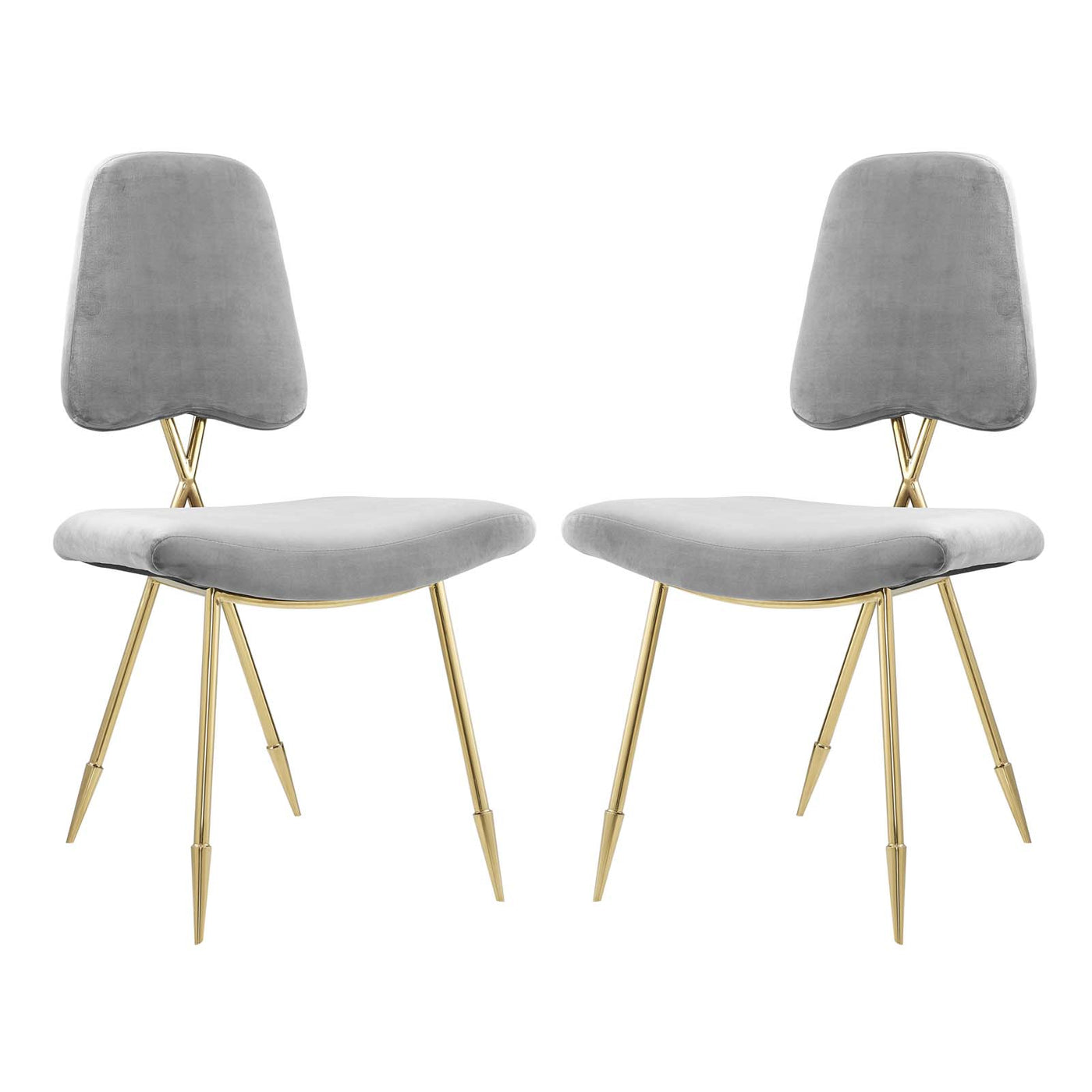 Survey Your Surroundings With Confidence With The Ponder Dining Side Chair. Ponders Padded High-Density Foam Seat Gently Slopes Upward Providing Embracing Comfort While The Tapered Back Provides Ergonomic Support. Finely Upholstered In Luxuriously Soft Velvet, And Supported By A Sturdy Gold Stainless Steel Frame With Four Angled Mid-Century Toothpick Legs, Ponder Makes A Striking Statement. Accentuate Your Modern Decor With A Contemporary Side Chair That Elevates Any Empty Area Of Your Home.Set Includes:Two - Ponder Dining Side Chair