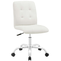 Etiquette Presides Over The Properly Styled Prim Armless Office Chair. Modern To The Touch, Luxurious To The Eye, Prim Features Deep Tufted Buttons, Skilled Faux Leather Upholstery, And Elegant Trim For Added Finesse. Prim Is Height Adjustable, Swivels To A 360 Spin, And Comes Outfitted With A Polished Chrome Steel Base With Five Dual-Wheel Nylon Casters. Perfect For Conference Rooms, Workstations, Or Desks, Prim Is A Modern Piece That Works Admirably To Further The Finer Civilities Of Life.Set Includes:One - Prim Mid Back Office Chair