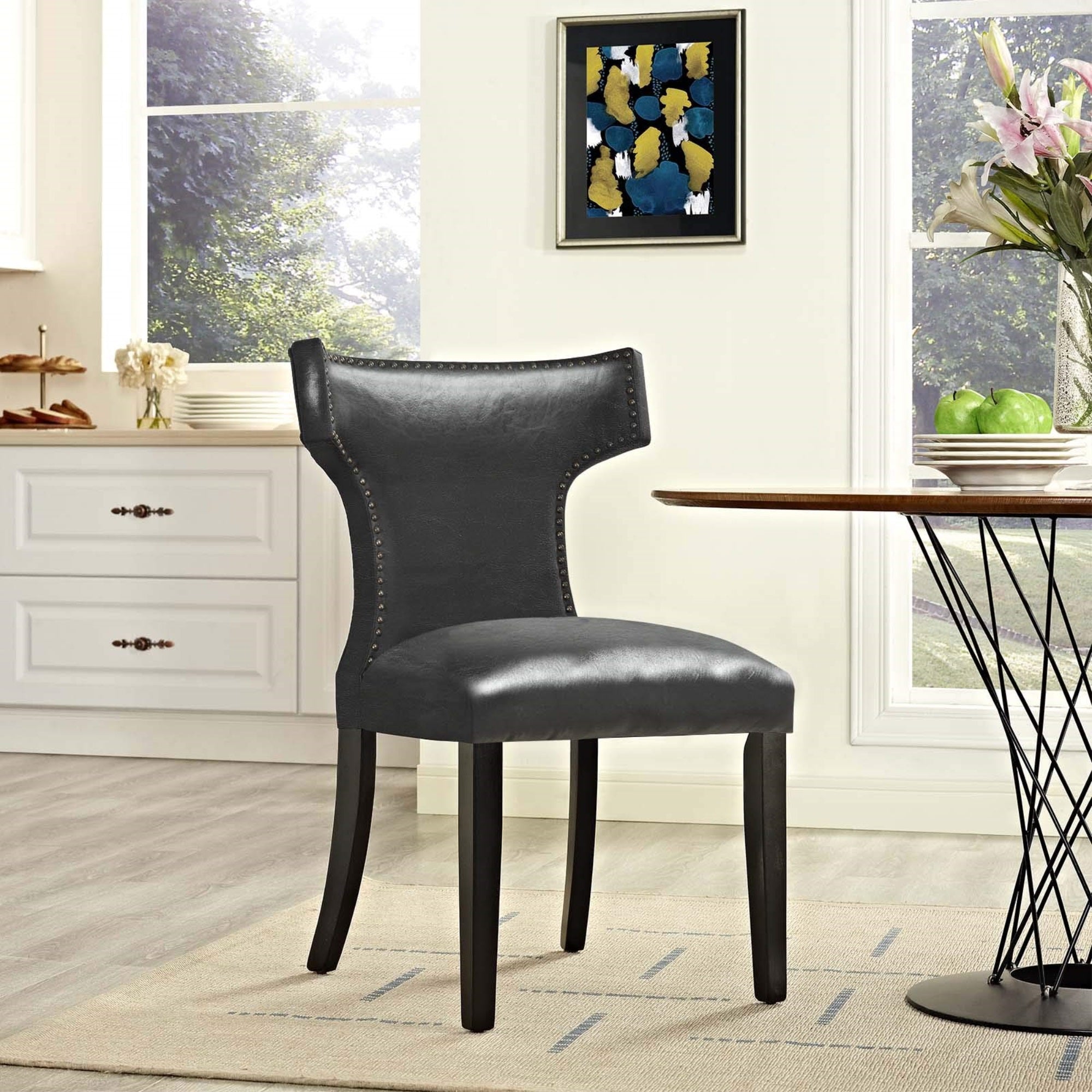 Transform Your Dining Decor With The Broadly Designed Curve Dining Side Chair. Sweeping Lines Complement A Minimalist Shape For A Chic Look Studded With Nailhead Trim. Curve Comes Generously Padded With Dense Foam Covered In Vinyl, Non-Marking Foot Caps, And Delivers Just The Right Touch Of Finesse With Tapered Wood Legs. Sporting An Hourglass Shape, Curve Works Well In A Variety Of Dining Room Arrangements.Set Includes:One - Curve Dining Chair