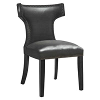 Transform Your Dining Decor With The Broadly Designed Curve Dining Side Chair. Sweeping Lines Complement A Minimalist Shape For A Chic Look Studded With Nailhead Trim. Curve Comes Generously Padded With Dense Foam Covered In Vinyl, Non-Marking Foot Caps, And Delivers Just The Right Touch Of Finesse With Tapered Wood Legs. Sporting An Hourglass Shape, Curve Works Well In A Variety Of Dining Room Arrangements.Set Includes:Two - Curve Dining Chair