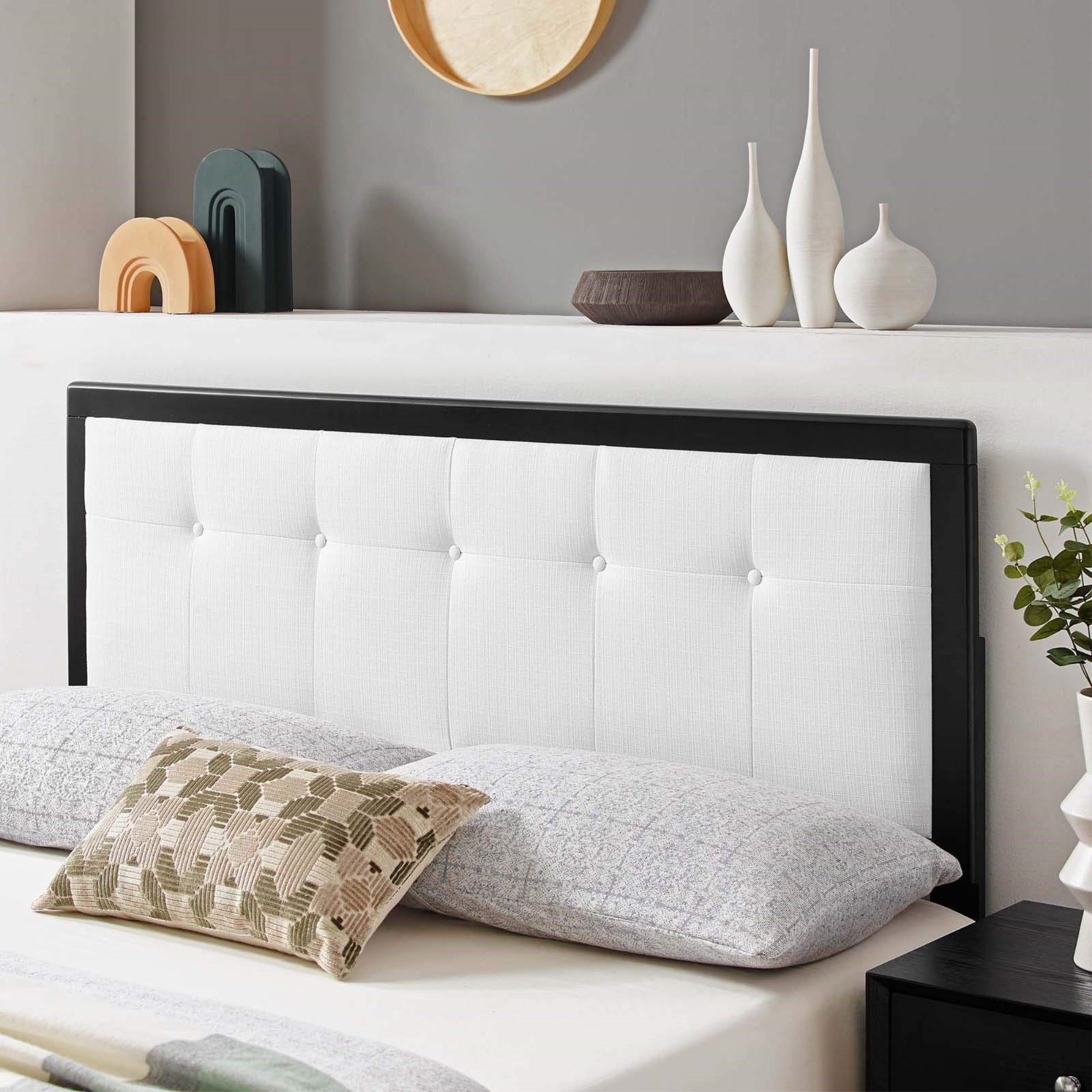 Casafoyer Draper Tufted Queen Fabric And Wood Headboard In Black White