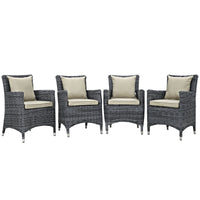 Experience The Outdoors With Exceptional Comfort And Quality. Summon Offers An Exquisite Two-Tone Synthetic Rattan Weave, Plush All-Weather Cushions With Industry-Leading Sunbrella Fabric, Uv Protection, And A Sturdy Powder-Coated Aluminum Frame. Featuring Rounded Arms And An Elegant Modern Look, Summon Is An Avant-Garde Outdoor Sectional Series Well-Equipped For Enhancing Patio, Backyard, Or Poolside Gatherings. This Installment Of The Series Is An Outdoor Patio Dining Set.Set Includes:Four - Summon Dining Armchair