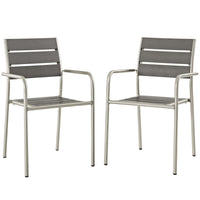 Casafoyer Eei-3203-Slv-Gry-Set Shore Outdoor Patio Aluminum Chair, Two Dining Armchairs, Silver Gray