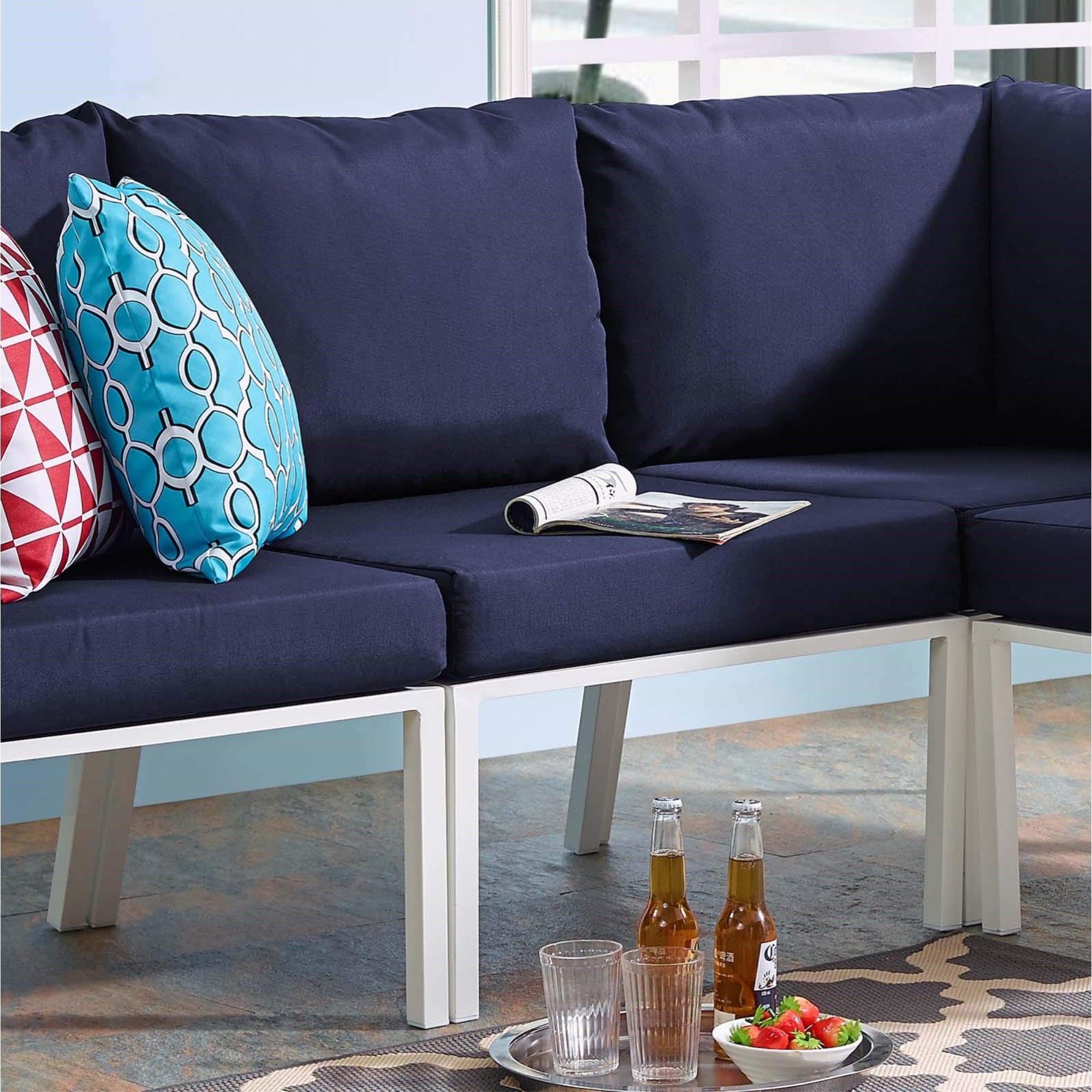 Refresh Your Outdoor Decor With The Riverside Outdoor Patio Aluminum Armless Chair. Defined By A Crisp, Coastal Style, This Installment Of The Riverside Outdoor Sectional Sofa Furniture Collection Features An Open Slatted Back Design, Angled Back Legs, And Plush 4' Thick All-Weather Uv-Resistant Fabric Cushions. Solidly Constructed With A Powder-Coated Aluminum Frame, The Riverside Armless Outdoor Chair Will Enhance The Look Of Your Patio, Backyard, Balcony, Porch, Deck, Or Poolside Area. Includes Foot Caps. Chair Weight Capacity: 300 Lbsset Includes:One - Riverside Armless Chair