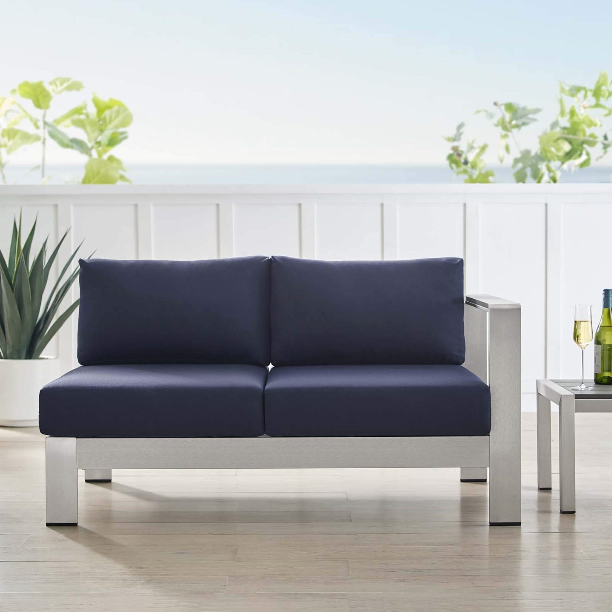 Enjoy Your Patio Or Backyard Leisure Time With The Strong And Durable Shore Outdoor Aluminum Right-Arm Loveseat. Made With An Anodized Brushed Aluminum Frame And Non-Marking Black Plastic Foot Caps, Shore Comes Outfitted With Resilient Sunbrella Fabric Canvas Cushions Tested To Last Through All Weather Conditions. The Shore Outdoor Aluminum Right-Arm Corner Sectional Loveseat Complements Your Casual Gatherings With A Look And Functionality You Can Rely On.Set Includes:One - Shore Sunbrella Fabric Aluminum Right-Arm Loveseat