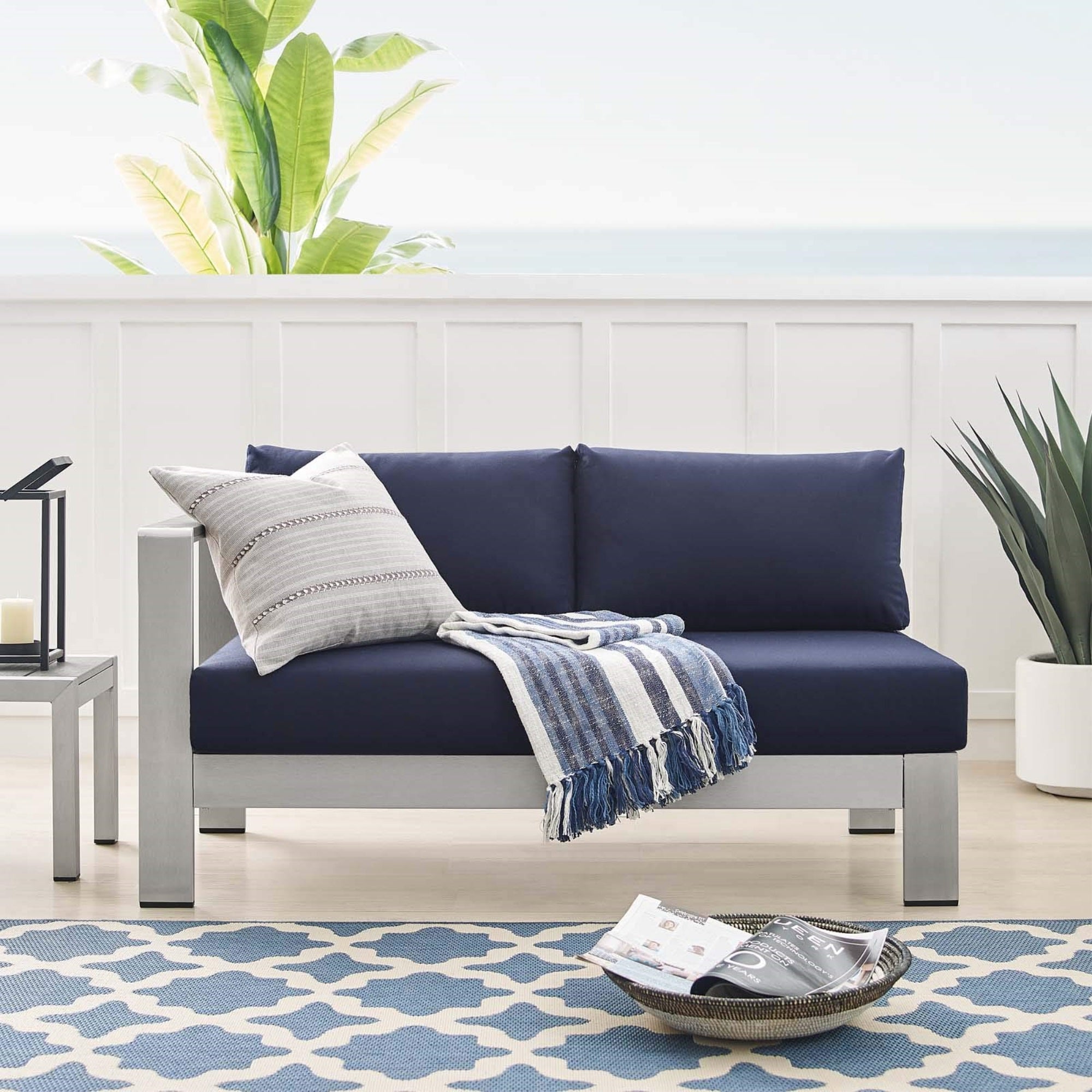 Casafoyer Eei-4223-Slv-Nav Shore Sunbrella Patio Left-Arm In Silver Navy, 53 X 27.5 X 25