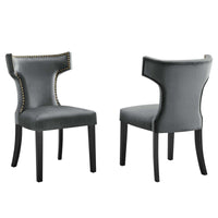 Casafoyer Eei-5008-Gry Curve Performance Velvet Dining Chairs - Set Of 2, Gray