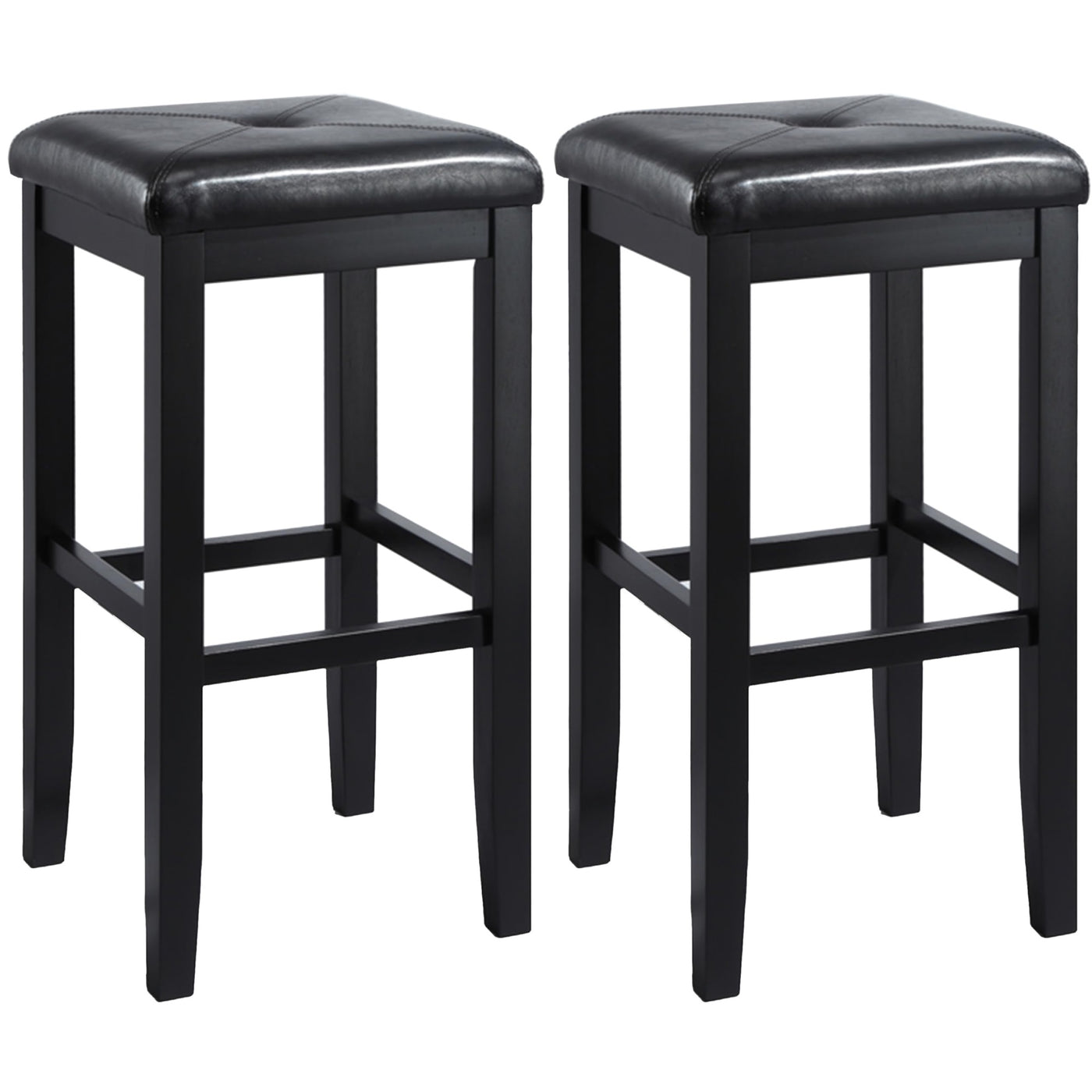 Casafoyer Furniture Upholstered Square Seat Bar Stools Set Of 2, Black, 29-Inch