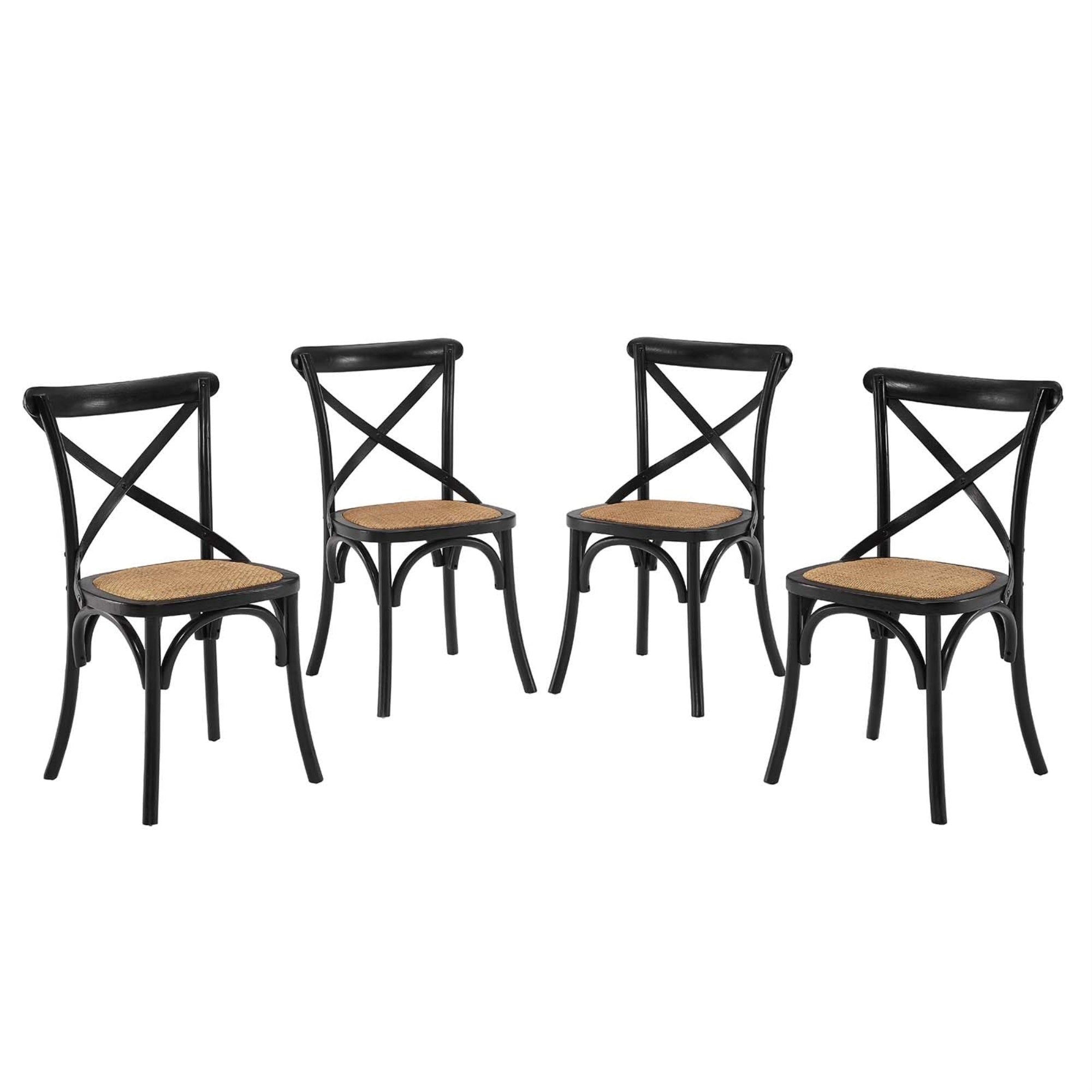 Casafoyer Gear Rustic Modern Farmhouse Elm Wood Rattan Four Dining Chairs In Black