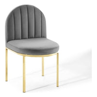 Reinvent Your Dining Room Decor With The Vintage Glamour Of The Isla Channel Tufted Performance Velvet Upholstered Dining Room Side Chair. Featuring A Vintage Clamshell Design And The Bold Lines Of Channel Tufted Accents, The Isla Dining Accent Chair Is A Piece To Be Remarked Upon By Guests And Friends. Dense Foam Padding Provides A Comfortable Seat, While Soft And Stain-Resistant Performance Velvet Polyester Upholstery Creates A Luxe Elegance For Long-Lasting Use. The Curved Gold Stainless Steel Frame On The Isla Side Chair Has Four Legs With Non-Marking Foot Caps To Protect Flooring. Chair Weight Capacity: 331 Lbs.Set Includes:One - Isla Channel Tufted Dining Side Chair