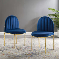 Reinvent Your Dining Room Decor With The Vintage Glamour Of The Isla Channel Tufted Performance Velvet Upholstered Dining Room Side Chair. Featuring A Vintage Clamshell Design And The Bold Lines Of Channel Tufted Accents, The Isla Dining Accent Chair Is A Piece To Be Remarked Upon By Guests And Friends. Dense Foam Padding Provides A Comfortable Seat, While Soft And Stain-Resistant Performance Velvet Polyester Upholstery Creates A Luxe Elegance For Long-Lasting Use. The Curved Gold Stainless Steel Frame On The Isla Side Chair Has Four Legs With Non-Marking Foot Caps To Protect Flooring. Chair Weight Capacity: 331 Lbs.Set Includes:Two - Isla Dining Side Chair