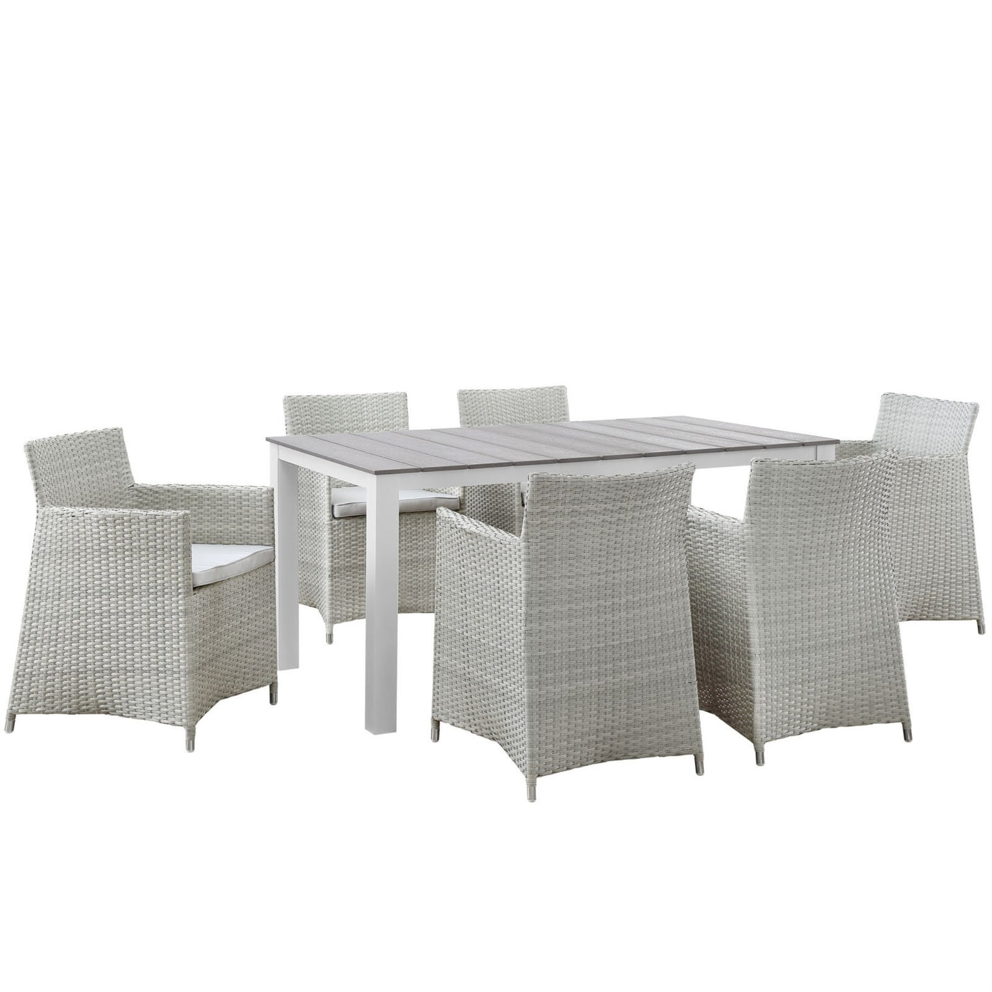 Casafoyer Junction Wicker Rattan 7-Piece Outdoor Patio Dining Set With 63' Dining Table And Six Dining Armchairs With Cushions In Gray White