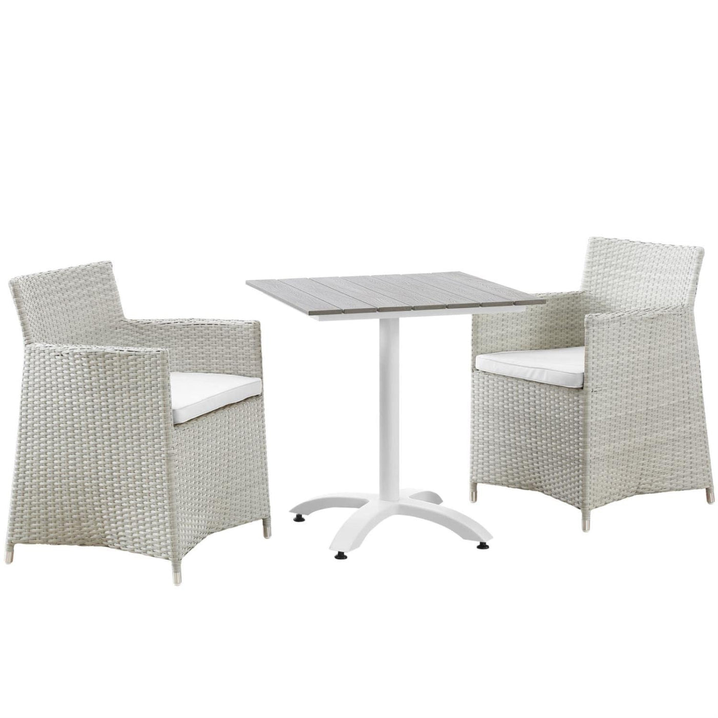 Casafoyer Junction Wicker Rattan Outdoor Patio 3-Piece Dining Set, Gray White