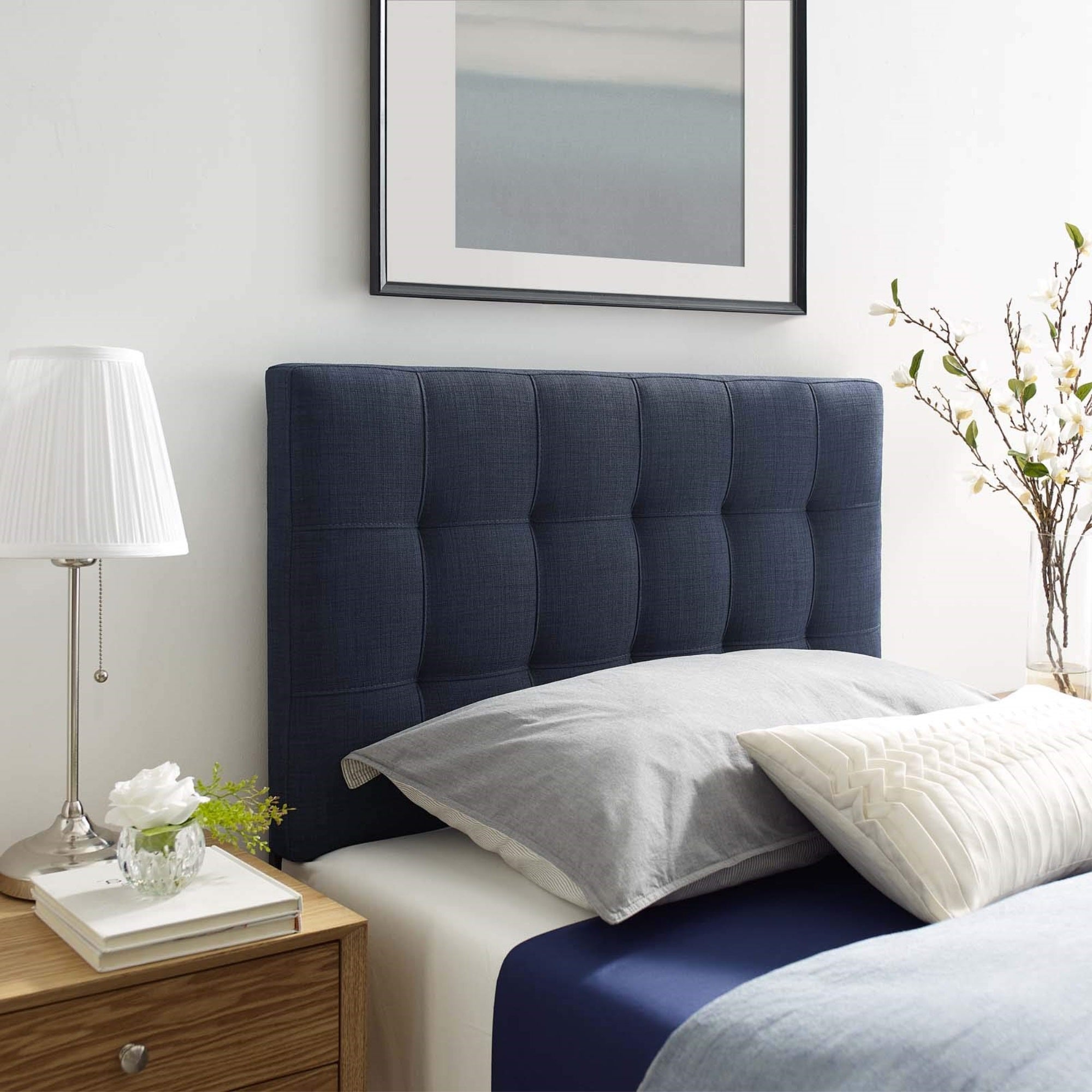 Casafoyer Lily Tufted Linen Fabric Upholstered Twin Headboard In Navy