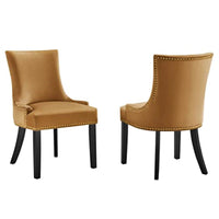 Inspire Your Decor With The Marquis Dining Side Chairs - Set Of 2. Marquis Is Fashioned With A Chic Hourglass Shaped Back, Studded Nailhead Trim, Non-Marking Foot Caps, Tapered Wood Legs, And A Regal Seat Generously Padded In Foam And Upholstered In Stain-Resistant Performance Velvet Fabric. With A Sinuous Spring Support System For A Premium Seating Experience, Marquis Works Well In Both Modern And Traditional Dining Rooms. Set Includes: Two - Marquis Performance Velvet Dining Chair