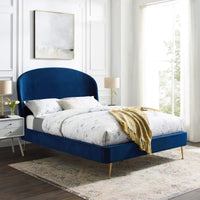 Casafoyer Mira Upholstered Performance Velvet Queen Platform Bed, Navy