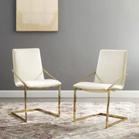 Freely Flowing Angles Form The Understated Elegance Of The Pitch Performance Velvet Upholstered Dining Armchair. The Pitch Dining Chair Has A Geometric Gold Stainless Steel Frame With Non-Marking Foot Caps, And A Foam Padded Plywood Seat. Covered In Soft And Stain-Resistant Performance Velvet Upholstery, The Pitch Accent Chair Embraces Open Space For A Notable Modern Chair That Stands Out Amongst Your Dining Room Decor. Chair Weight Capacity: 330 Lbs.Set Includes:Two - Pitch Dining Armchair