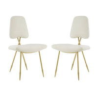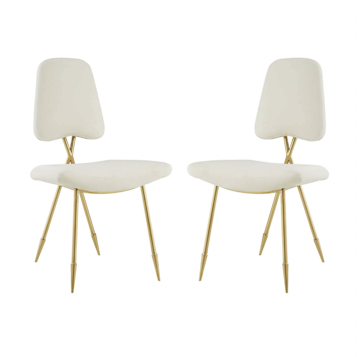 Survey Your Surroundings With Confidence With The Ponder Dining Side Chair. Ponders Padded High-Density Foam Seat Gently Slopes Upward Providing Embracing Comfort While The Tapered Back Provides Ergonomic Support. Finely Upholstered In Luxuriously Soft Velvet, And Supported By A Sturdy Gold Stainless Steel Frame With Four Angled Mid-Century Toothpick Legs, Ponder Makes A Striking Statement. Accentuate Your Modern Decor With A Contemporary Side Chair That Elevates Any Empty Area Of Your Home.Set Includes:Two - Ponder Dining Side Chair