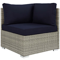 Casafoyer Repose Wicker Rattan Outdoor Patio Corner Sectional Sofa Chair With Cushions In Light Gray Navy