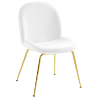 Casafoyer Scoop Performance Velvet Side Gold Stainless Steel Metal Base In White, Dining Chair