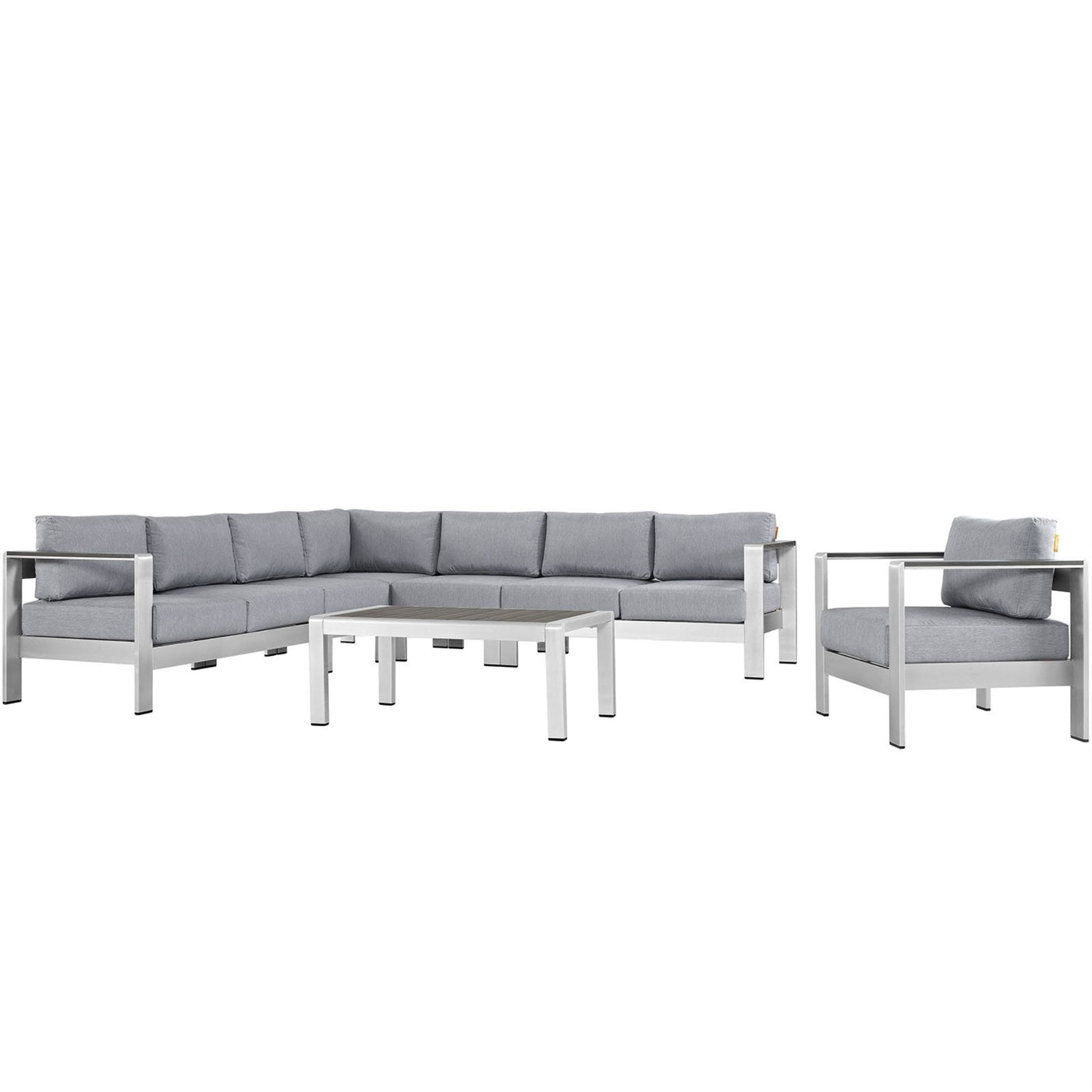 Casafoyer Shore 7-Piece Aluminum Outdoor Patio Sectional Sofa Set In Silver Gray