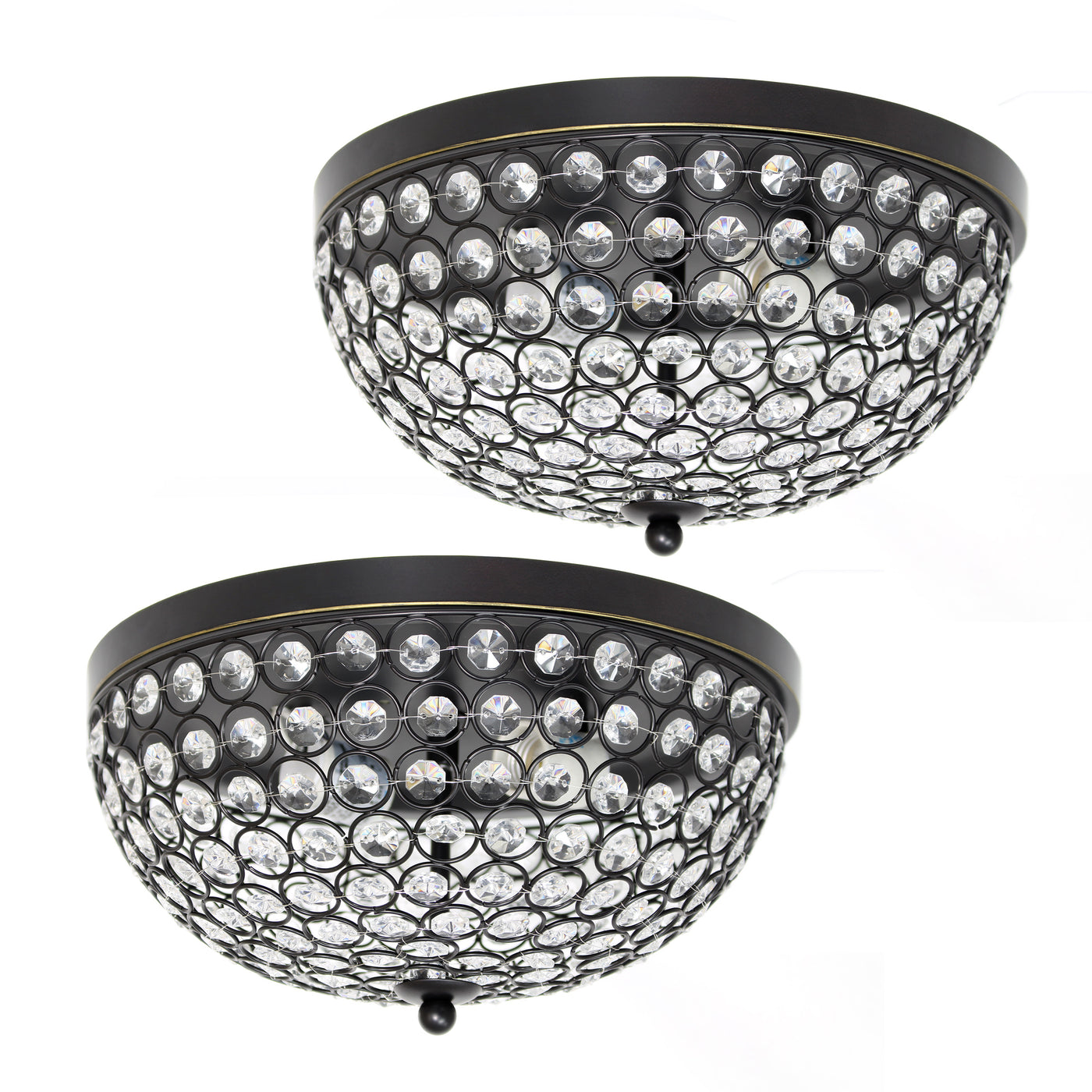 Elegant Designs 2 Light Elipse Crystal Flush Mount Ceiling Light 2 Pack, Restoration Bronze