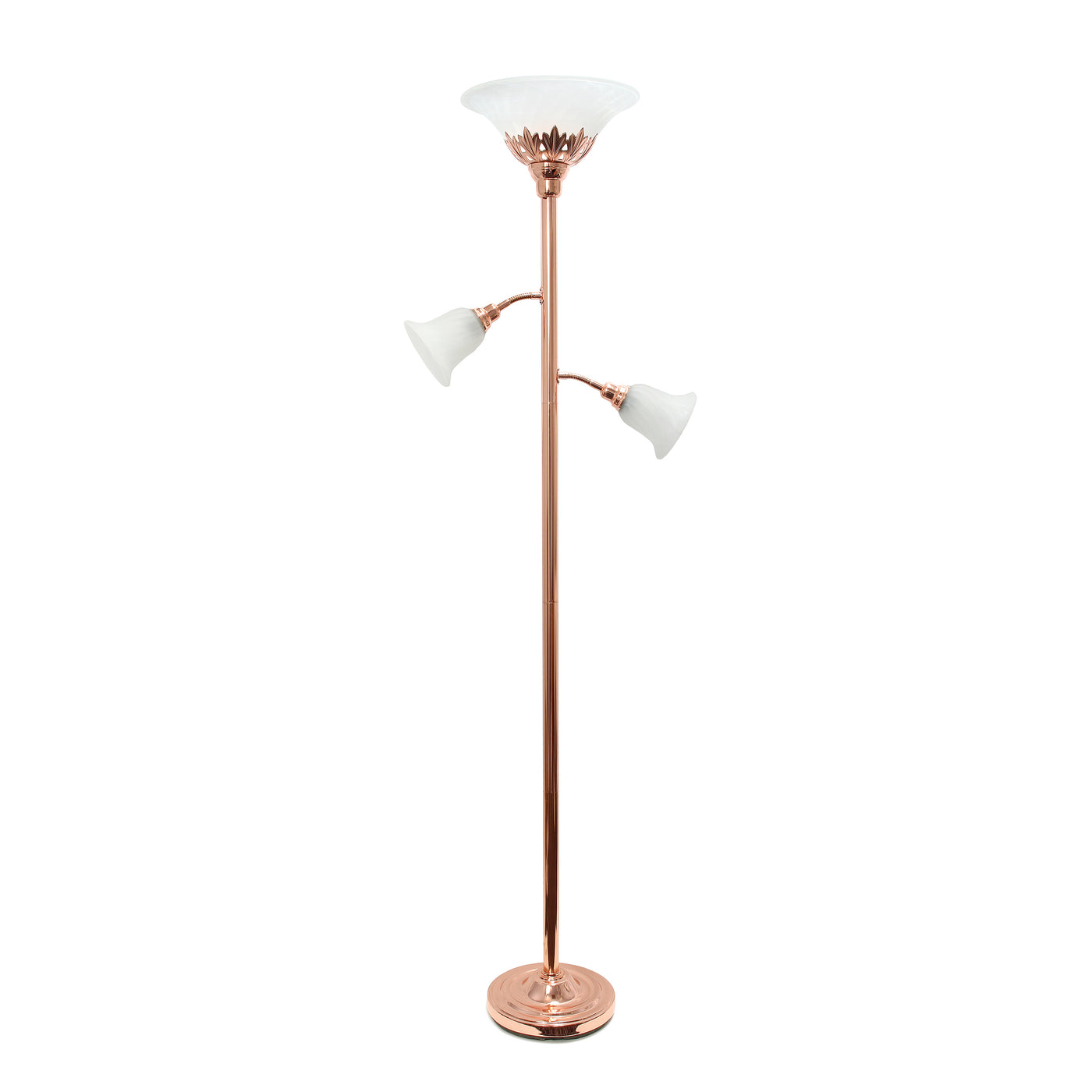Elegant Designs 3 Light Floor Lamp With Scalloped Glass Shades, Rose Gold
