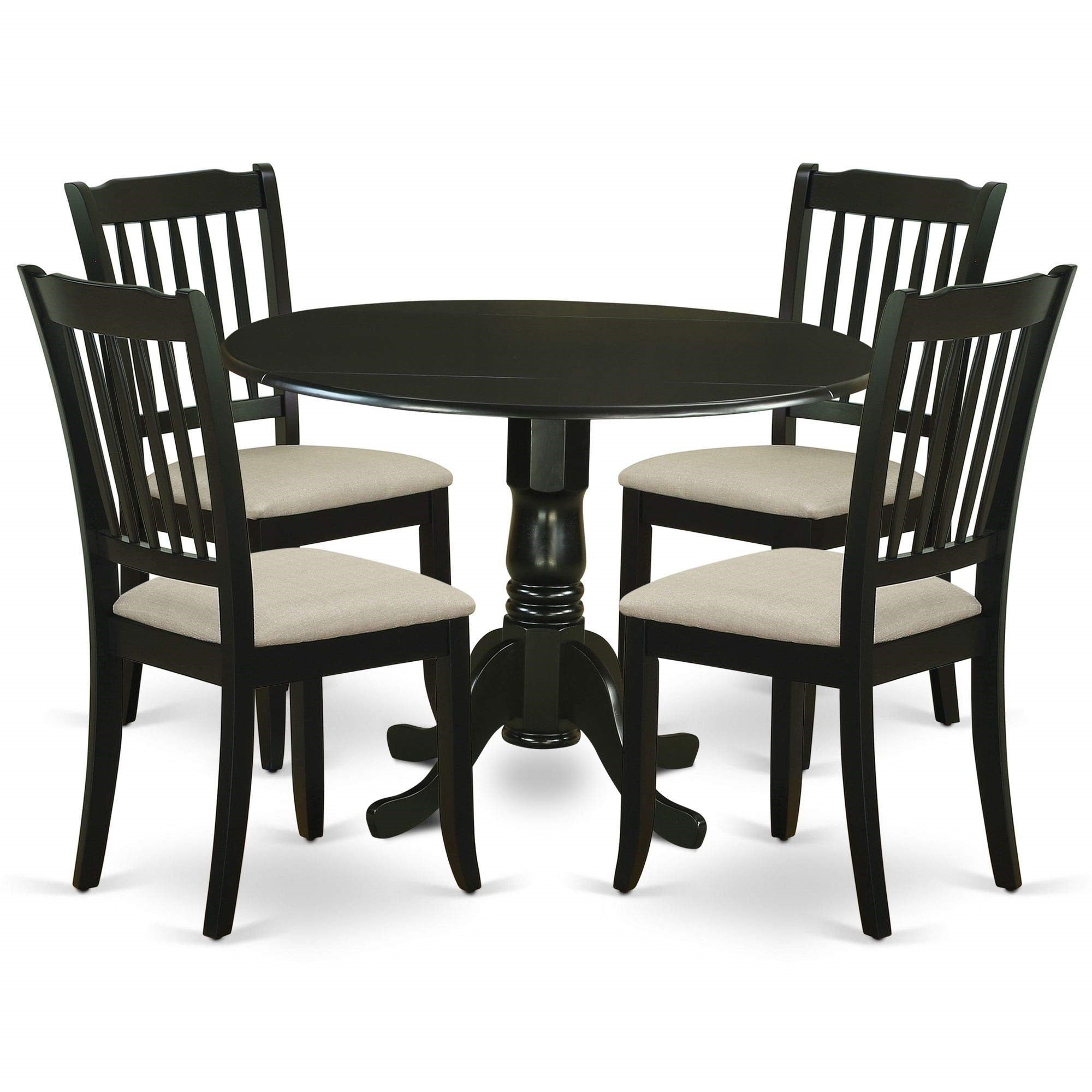 Ergode Dlda5-Blk-C Dublin 5 Piece Dining Set, Round Kitchen Table With Dropleaf, 4 Linen Fabric Upholstered Chairs, 42X42 Inch, Black