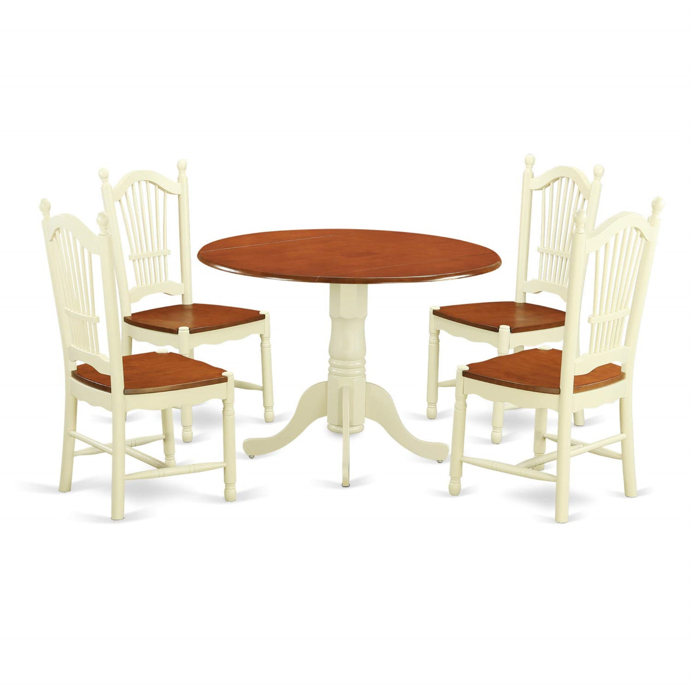 Ergode Dldo5-Bmk-W Kitchen Table Set, 5-Piece Dining Room Furniture, Wooden Table & 4 Chairs, Rubberwood Construction, Elegant & Durable, Buttermilk & Cherry Color, Slatted Backrest, 42X42 Inch