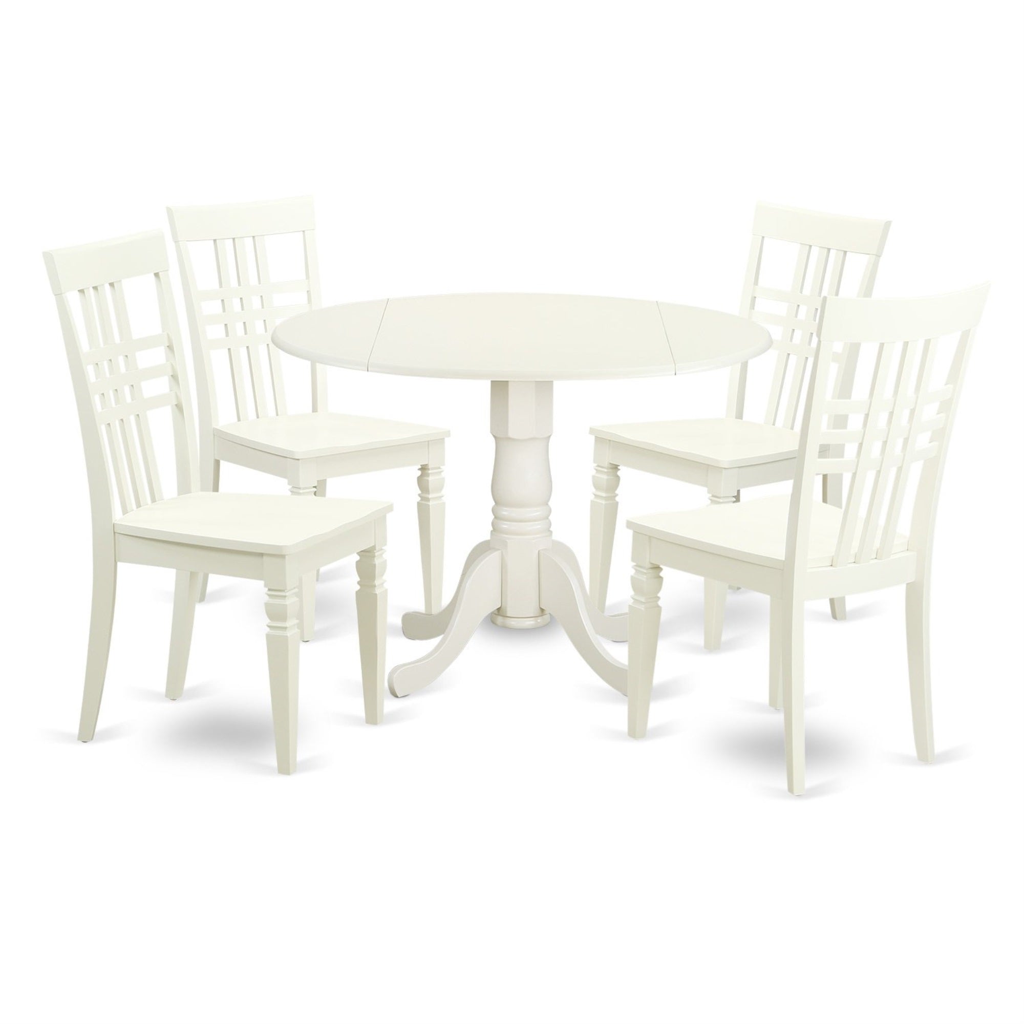 Ergode Dllg5-Lwh-W, 5-Piece Kitchen Dining Set, Round Table With Dropleaf, 4 Wood Seat Chairs, 42X42 Inch, Linen White