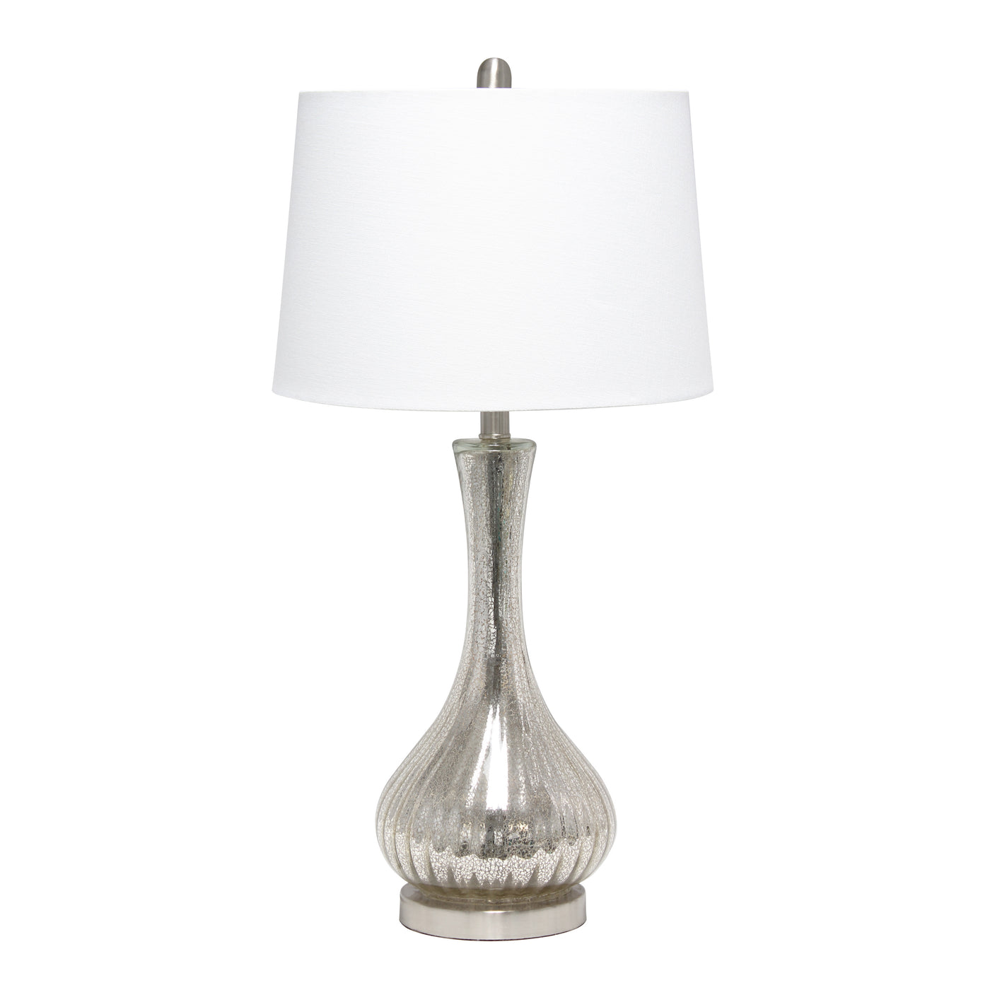 Lalia Home Speckled Mercury Tear Drop Table Lamp With White Fabric Shade