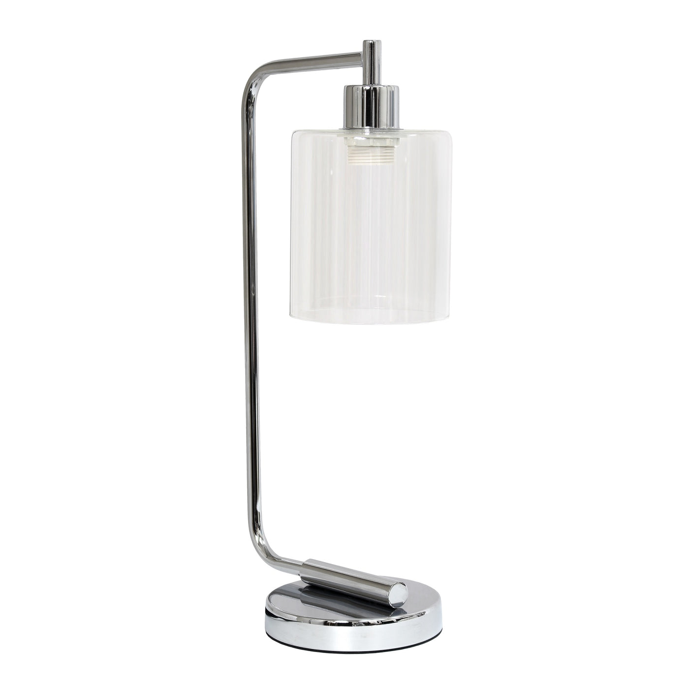 Simple Designs Bronson Antique Style Industrial Iron Lantern Desk Lamp With Glass Shade, Chrome