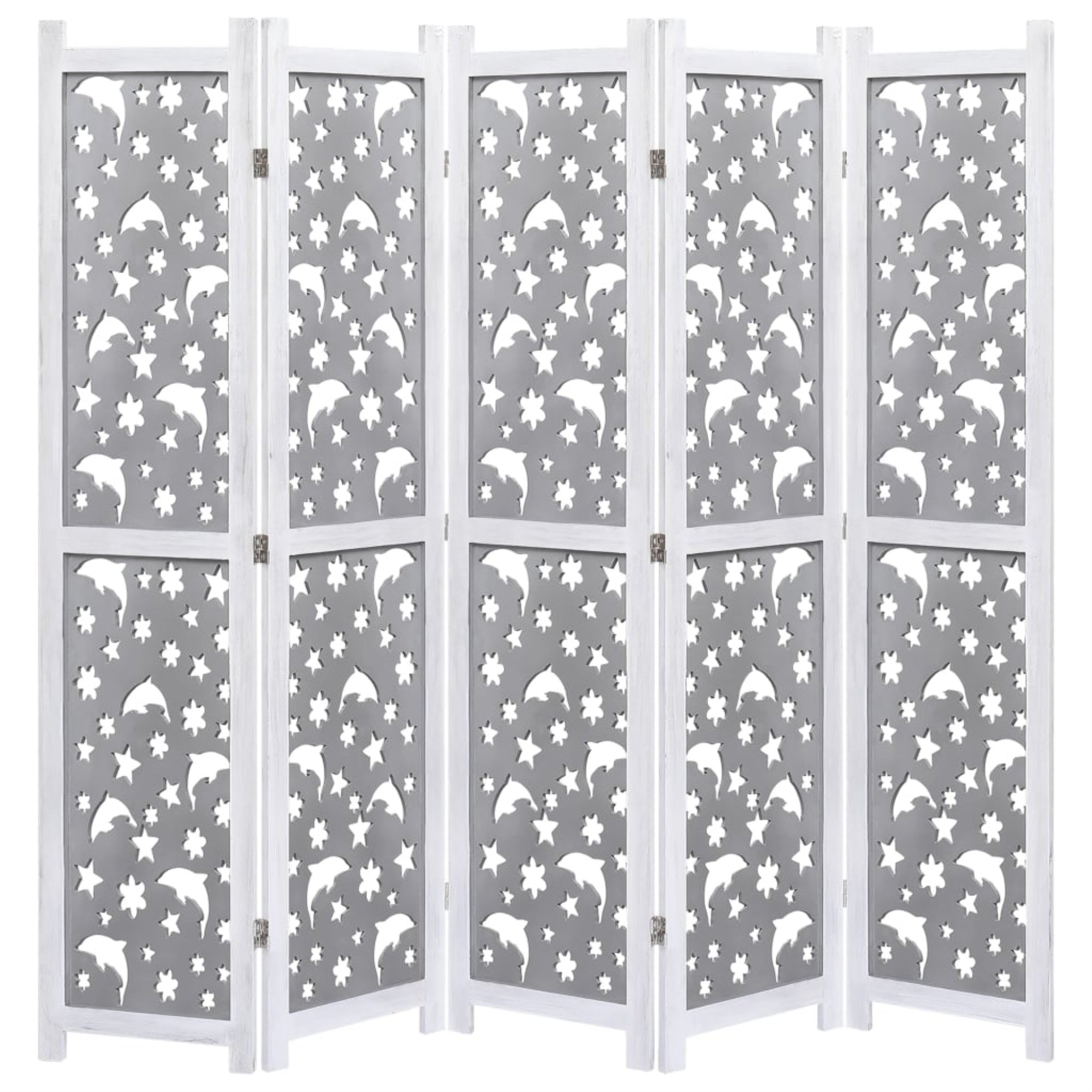 Vidaxl 5-Panel Room Divider Gray 68.9'X64.7' Solid Wood
