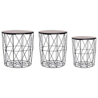Vidaxl Coffee Table 3 Pcs Black - 287645, This Set Of 3 Coffee Tables Exude A Vintage Charm And Will Make A Distinctive Addition To Your Home Decor. They Can Also Be Used As Storage Baskets, Couch Tables, Side Tables, Etc. The Solid Wood Tabletop Provides A Smooth And Stable Surface On Which You Can Place Drinks, Vases Or Other Decorative Items. By Removing The Top, You Turn The Side Table Into A Storage Basket. Moreover, The Smaller Table Can Be Placed Inside The Larger One To Save Space. The Strong Powder-Coated Metal Frame Adds To The Robust Construction As Well As An Industrial Look.