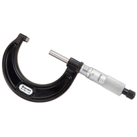 The Starrett 436.1 Outside Micrometer Features Ratchet Stop, Lock Nut, And Carbide Face. .001 Grad, Ratchet Stop, Lock Nut, Carbide Faces.