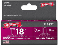 Arrow Fastener 7/16 In. L X 3/16 In. W Galvanized Steel Round Crown Wire Staples 18 Ga. 1000 Pk - Case Of: 5; Each Pack Qty: 100