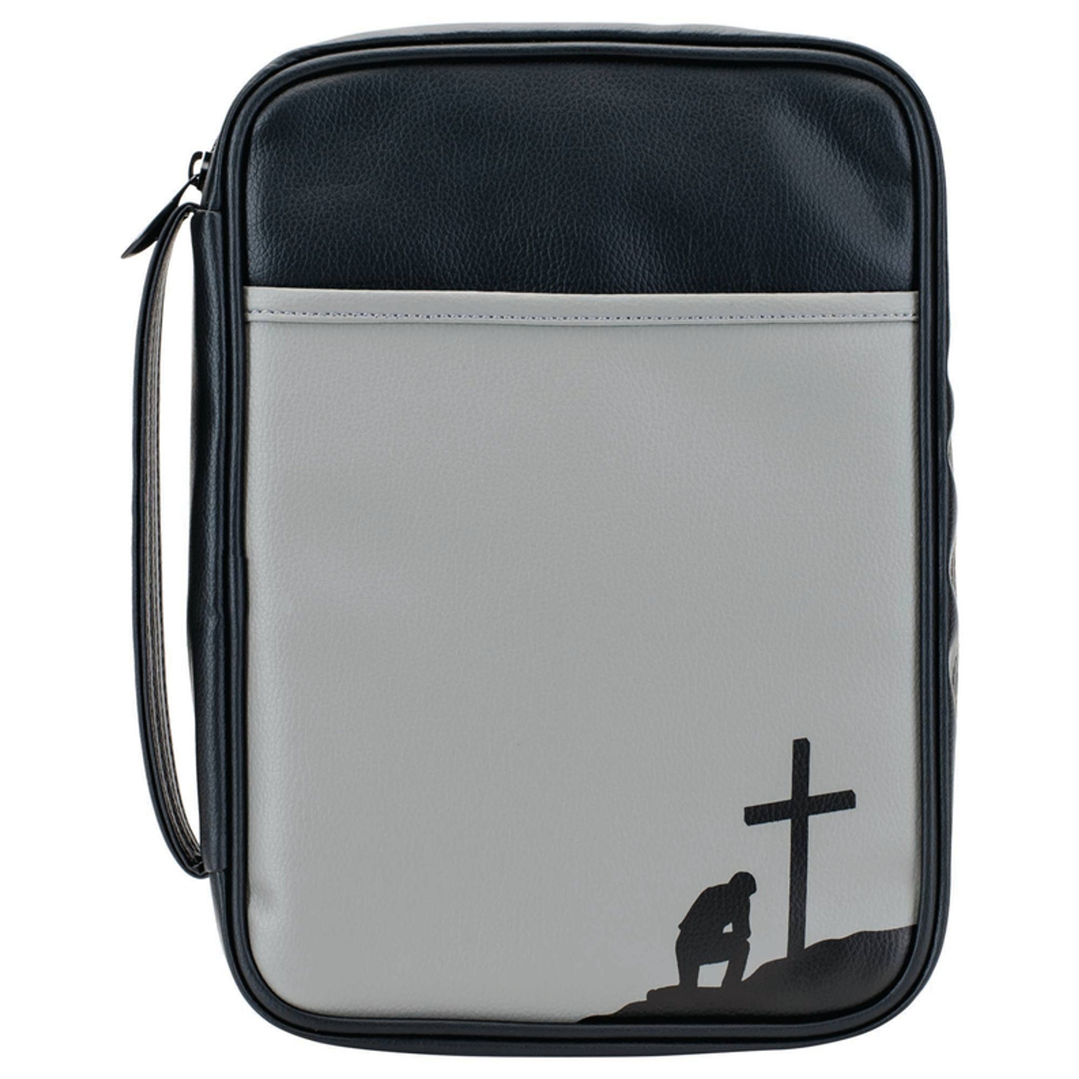 Man Of God Leatherette Bible Cover Large Size Black Leatherette Bible Cover Features A Man And Cross Design On The Contrasting Gray Front Pocket.