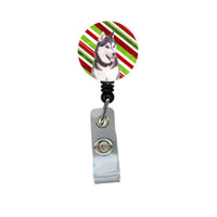 Candy Cane Holiday Christmas Alaskan Malamute Retractable Badge Reel