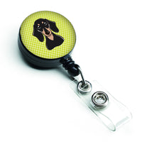Checkerboard Lime Green Smooth Black And Tan Dachshund Retractable Badge Reel