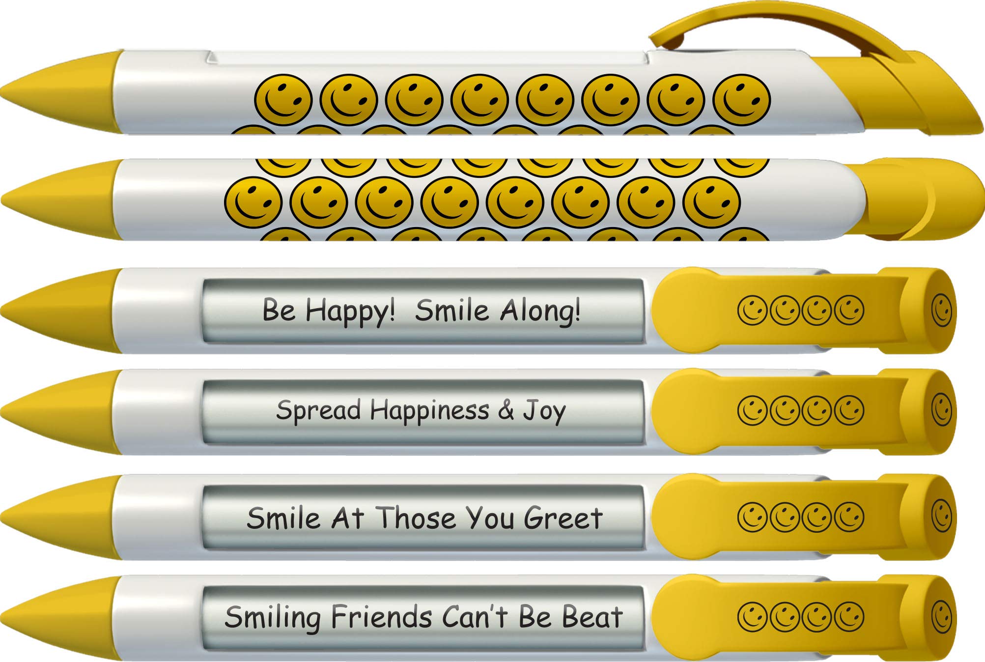Set Of 6 Smiley Face Friend Rotating Message Pens - 6 Pack Of Ballpoint Pens There Are 4 Messages That Rotate Up Into A Clear Window Messages Change Each Time You Click The Pen Pens Are 1Mm Ballpoint, Retractable Pen With Black Ink They Are Unique And Fun Keepsake And Gift