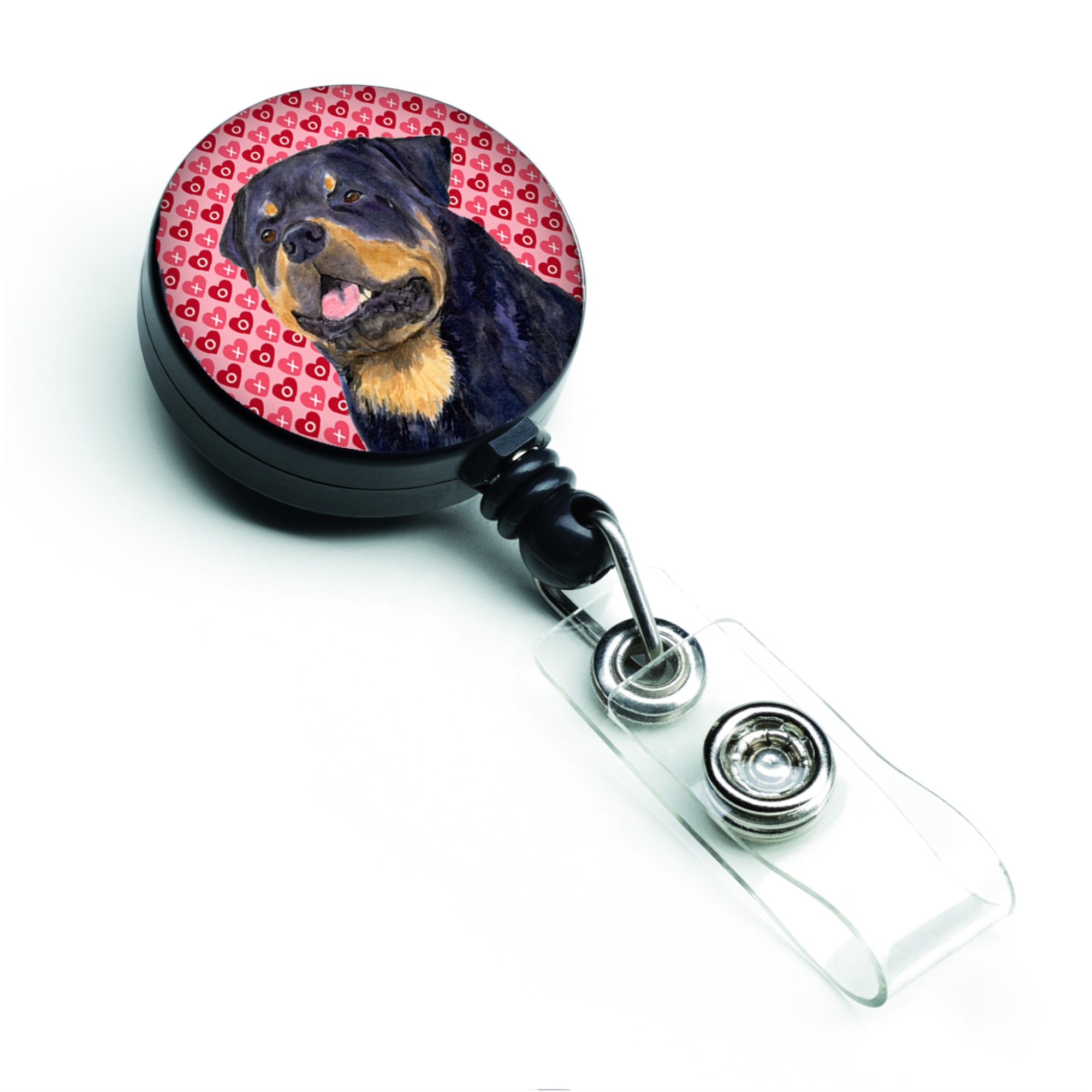 213-705332231848 Rottweiler Hearts Love And Valentine'S Day Portrait Retractable Badge Reel By Carolines Treasures, Inc, Made In Usa.Retractable Badge Reel... Round Retractable Reel With Belt Clip On The Back. Use For School Or Work Id Or Badge. Retractable Chord Allows You To Swipe Your Badge Or Id Without Removing. Artwork Printed On Aluminum And Covered With A Doming Finish.