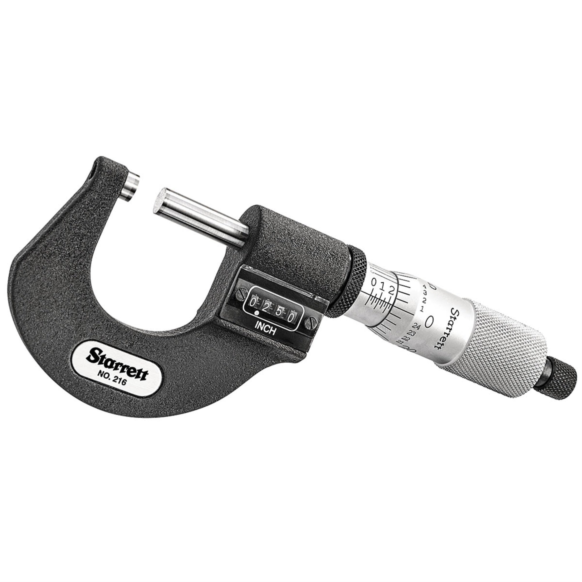 The Starrett 216 Digital Micrometer Is A Mechanical Digital Micrometer That Is Simple To Use Even By The Inexperienced. The Anvil And Spindle Are Sized At .250' (6.35Mm). 1, .0001 Grad, Carbide Faces, Ratchet Stop, Lock Nut (6.35Mm).