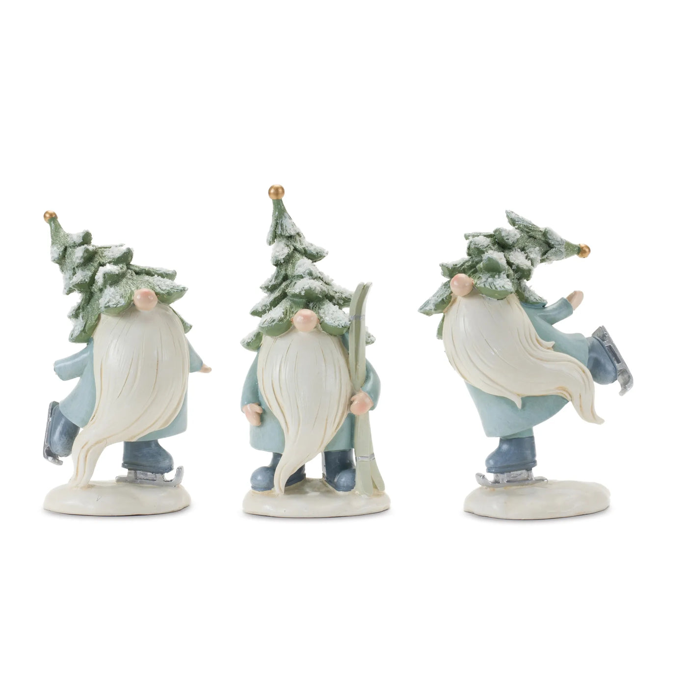 Ring In The Holiday Season With These Adorable Set Of Three Pine Tree Gnome Figurines! Crafted From Polyresin And Frosted For A Winter-Inspired Finish, The Set Is Adorned With Delightful Ski And Ice Skate Accents In Cool Green And Blue Tones. With A Unique Pine Tree Hat Design, These Charming Gnomes Will Bring Holiday Spirit To Any Home. Add Some Extra Cheer This Season With The Set Of Pine Tree Gnomes!