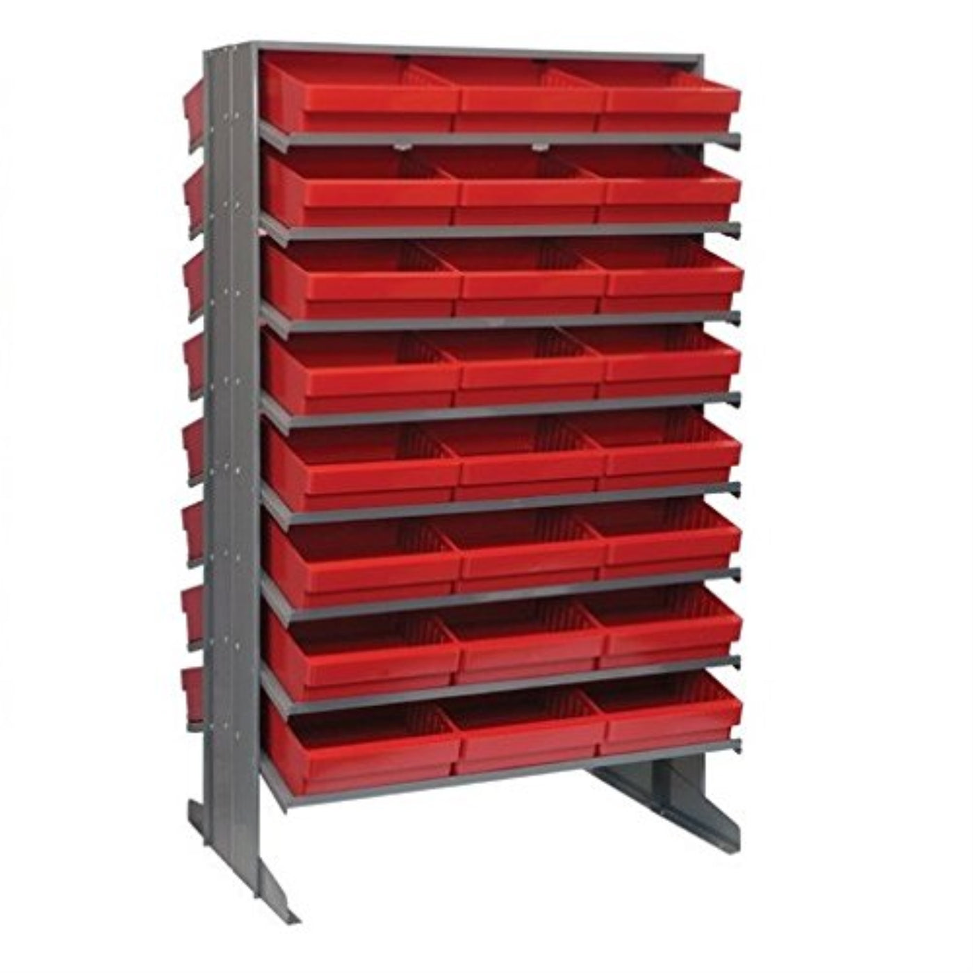 Pick Rack, Slopped, Double Sided, 24L X 36W X 60H, 800 Lbs. Capacity, (16) Shelves Configuration, Includes: (48) Qed801 Red Bins